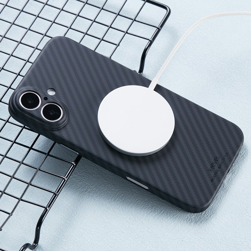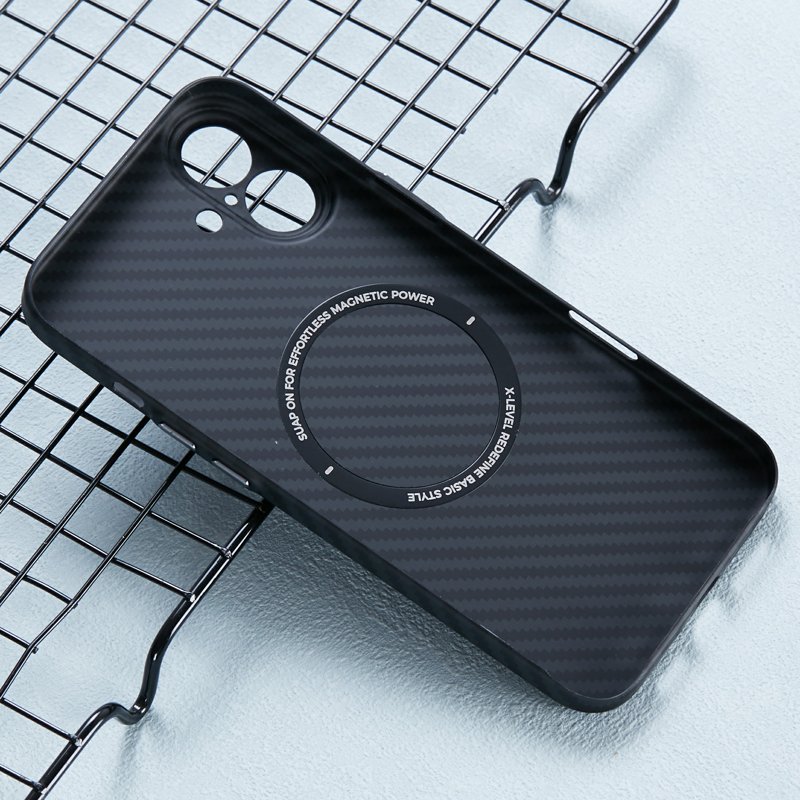 X-LEVEL iPhone 16 Plus Skal Magnetiskt Ultratunt Kolfiber Svart
