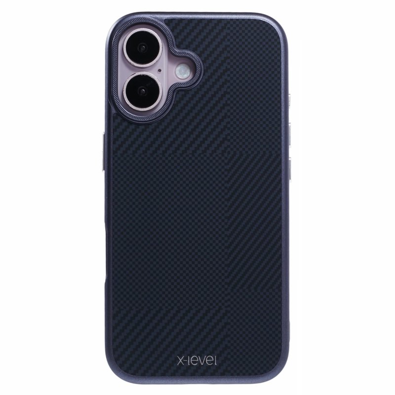 X-LEVEL iPhone 16 Skal Anti-Scratch Hårdplast Kolfiber Blå