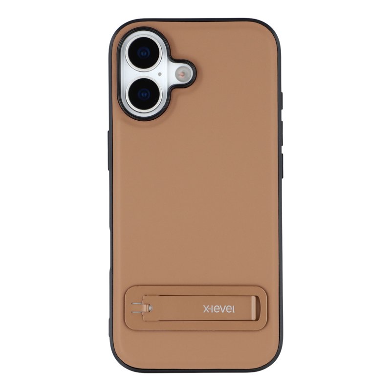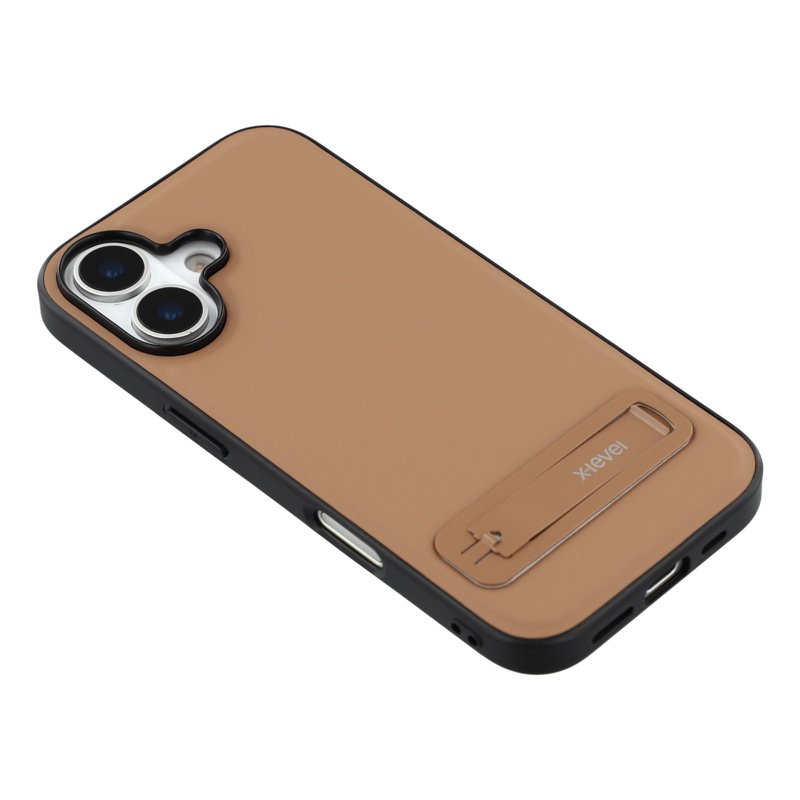 X-LEVEL iPhone 17 Skal Läderbelagt TPU med Ställ - Brun