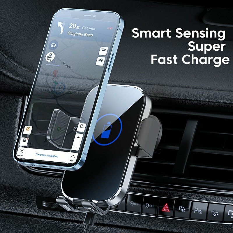 Denna trådlösa telefonladdare och bilhållare kombinerar funktionalitet och säkerhet. Med en maximal effekt på 15W erbjuder den snabb laddning för din enhet. Den smarta sensorn gör det enkelt att använda med en hand, vilket ger en bekväm och handsfree upplevelse under körning.