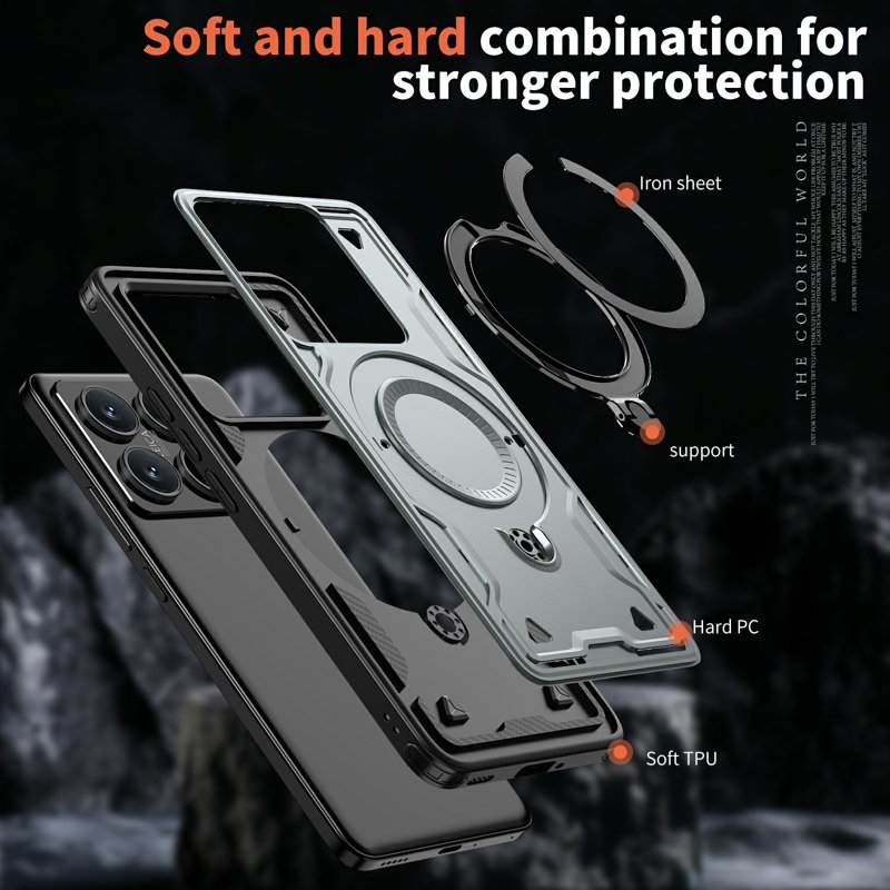 Skydda din telefon med ett robust fodral som erbjuder militärklassigt skydd. Detta fodral är tillverkat av hållbara PC- och TPU-material, vilket gör det stöttåligt och droppresistent. Med en inbyggd kickstand kan du enkelt njuta av handsfree-visning i flera vinklar. Fodralet är också kompatibelt med MagSafe-laddare för snabb och säker laddning.