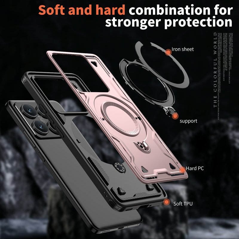Detta telefonfodral erbjuder militärklassad skydd och är tillverkat av hållbara PC- och TPU-material. Med en 360-graders roterande kickstand får du en flexibel och handsfree visningsupplevelse. Fodralet är också kompatibelt med MagSafe-laddare för snabb och säker laddning. Skydda din enhet mot stötar och repor med stil.