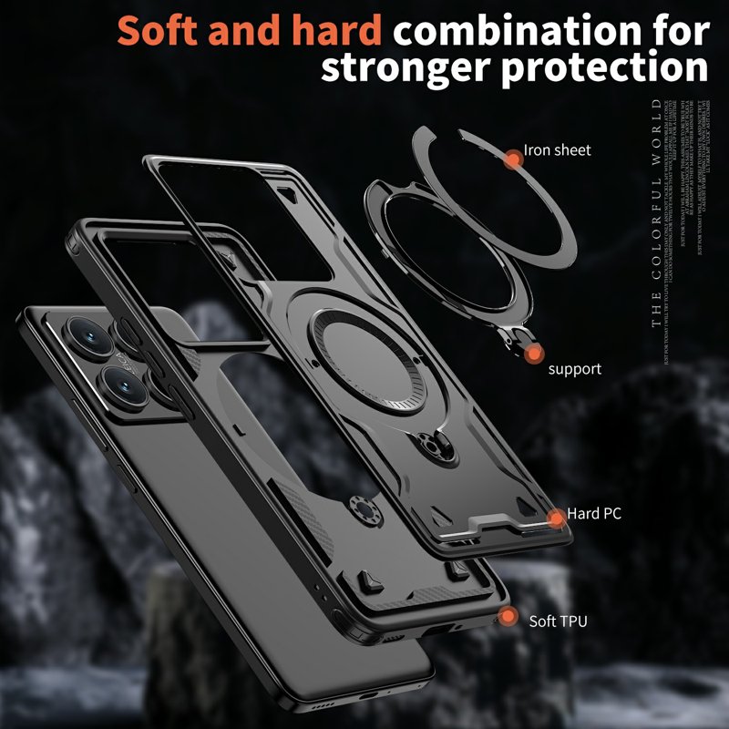 Detta telefonfodral erbjuder militärklassad skydd och är designat för att klara tuffa förhållanden. Med en kombination av PC och TPU-material ger det ett pålitligt skydd mot stötar och fall. Njut av en praktisk och funktionell lösning för din enhet.