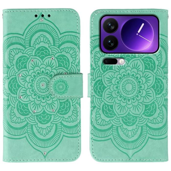 Xiaomi 17 Pro Max Konstläder Plånboksfodral Rhinestone Mandala Imprint - Grön (Grön)