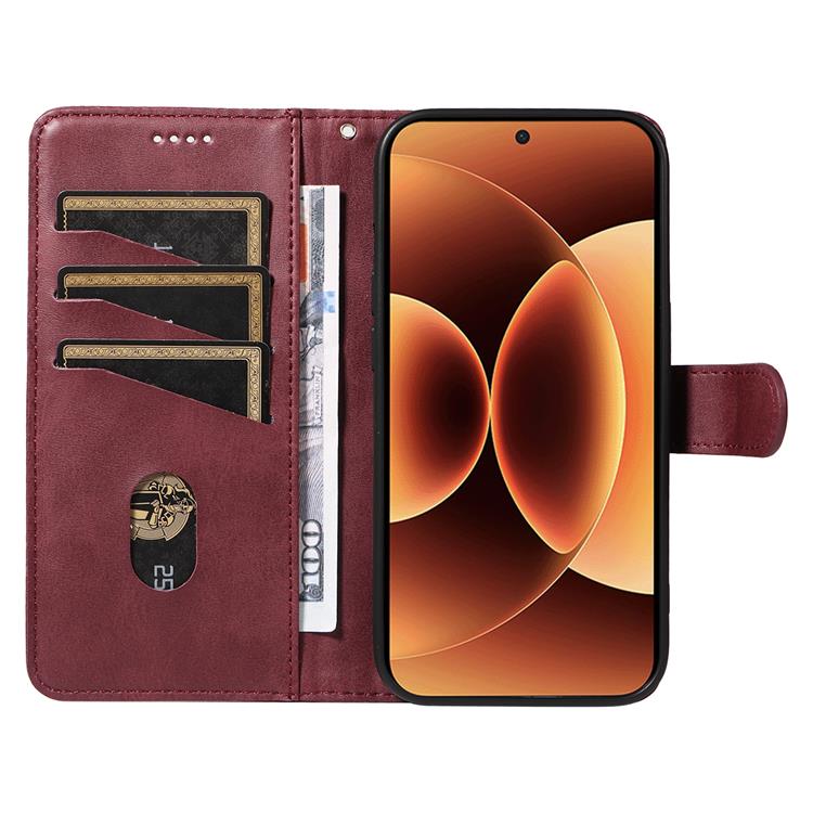 Xiaomi 17 Pro Max Plånboksfodral T Shape Lines Läder Med Handledsrem - Vinröd