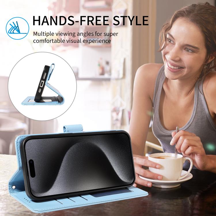 Skalet är inte bara snyggt – det är också genomtänkt designat för praktisk användning. Med tre kortfack, ett kontantfack och en säker magnetstängning fungerar det som en elegant plånbok. Dessutom skyddar den inbyggda RFID-teknologin dina kort mot elektronisk stöld. Den vikbara ställfunktionen gör filmvisning och videosamtal bekvämt handsfree, och den avtagbara handledsremmen gör mobilen enkel och säker att bära med sig.