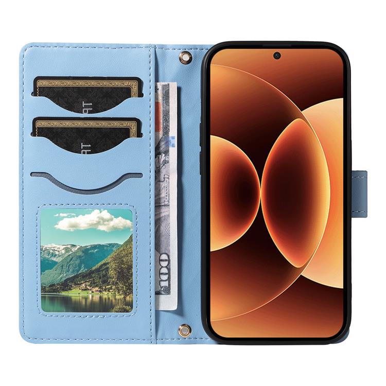 Xiaomi 17 Pro Plånboksfodral Rhombus Läder Med Rem - Blå
