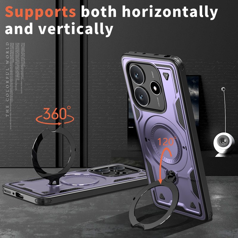 Denna telefonfodral erbjuder överlägset skydd med en hållbar kombination av PC och TPU-material. Den är stöttålig och fallskyddad, vilket gör att din enhet förblir säker under tuffa förhållanden. Med en inbyggd kickstand och MagSafe-kompatibilitet är detta fodral både funktionellt och praktiskt för din vardag.
