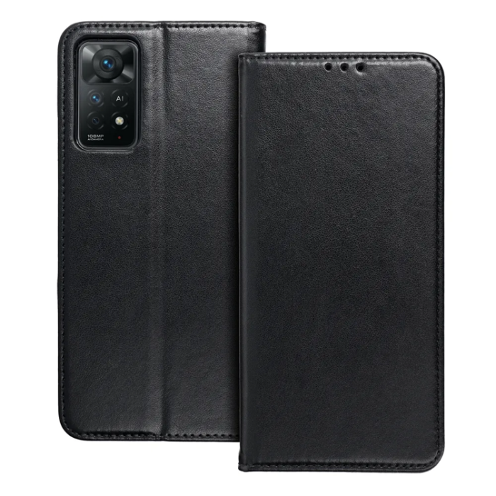 Smart Magneto-hölstret är ett klassiskt mobilfodral med plånboksfunktion och tv-bänk. Tillverkad av ett material med en matt struktur, insidan är fodrad med ett mjukt tyg som skyddar mobilens skärm från repor. Den har ett magnetlås.
