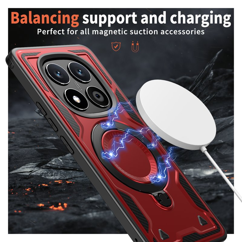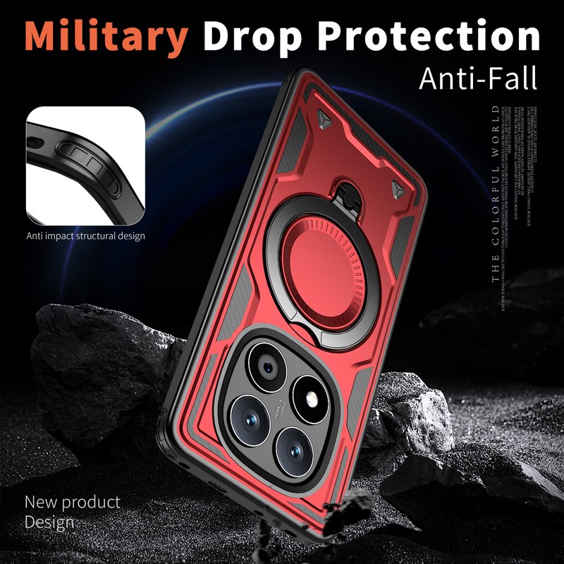 Denna telefonfodral erbjuder överlägset skydd med en hållbar kombination av PC och TPU-material. Den är stöt- och fallresistent, vilket gör att din enhet förblir säker även under tuffa förhållanden. Med en 360-graders roterande kickstand får du en flexibel och handsfree visningsupplevelse. Fodralet är också kompatibelt med MagSafe-laddare för snabb och säker laddning.