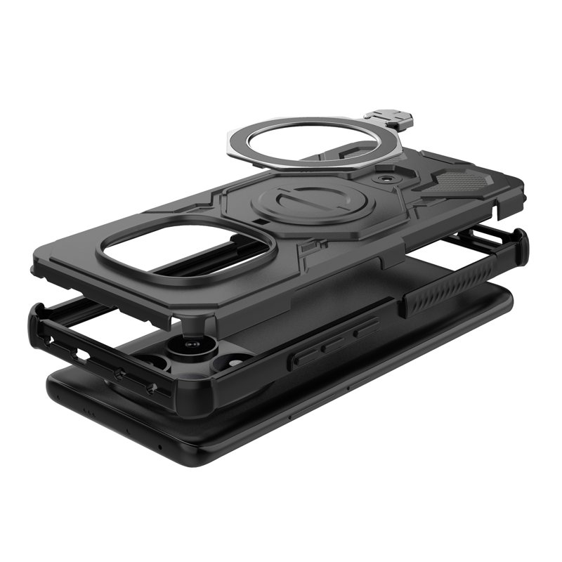 Denna telefonfodral erbjuder överlägsen skydd med en hållbar kombination av PC och TPU-material. Den är stöttålig och fallskyddad, vilket gör att din enhet förblir säker även under tuffa förhållanden. Med en 360-graders roterande kickstand kan du enkelt njuta av handsfree-visning i flera vinklar. Dessutom är fodralet kompatibelt med MagSafe-laddare för snabb och säker laddning.