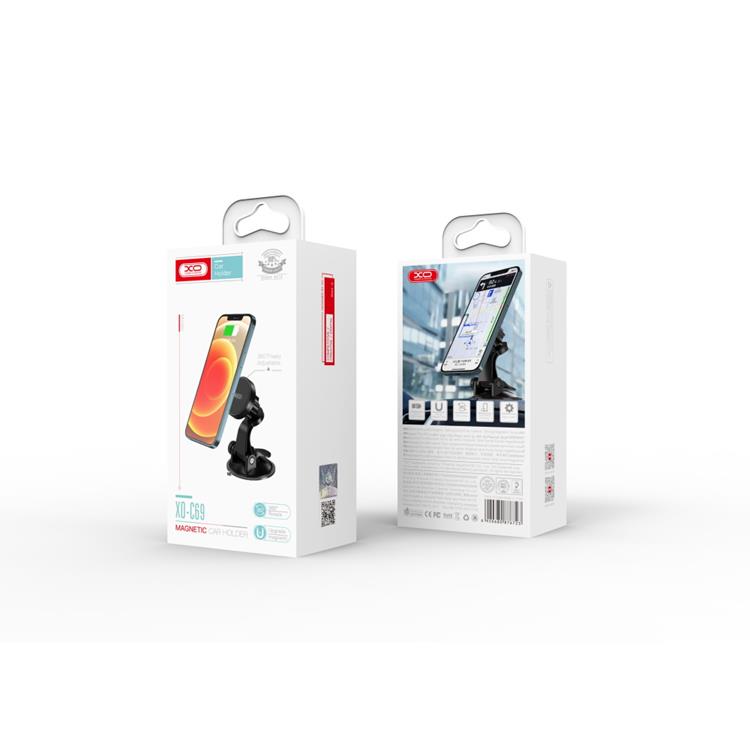 XO C69 är en universell magnetisk hållare för montering på bilens instrumentbräda. Dess kompakta dimensioner gör att den passar perfekt i alla utrymmen. Setet inkluderar metallklistermärken för enkel fästning av din enhet.