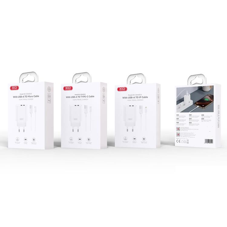 XO Snabbladdare 2x USB-A 2.4A Med USB-A/USB-C Kabel - Vit
