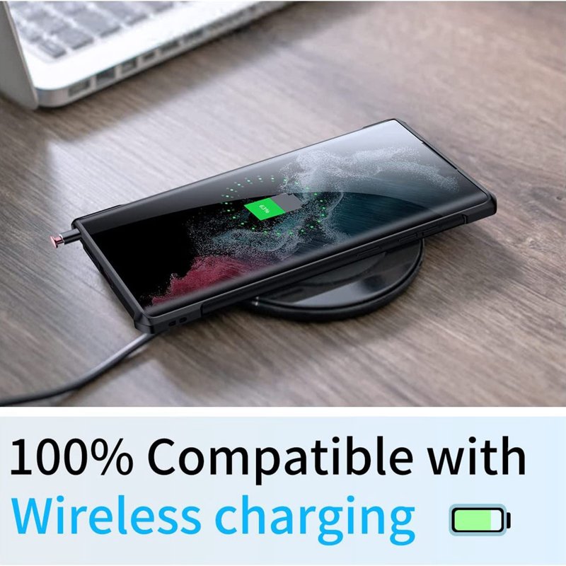 - Trådlös laddning: Ladda din enhet utan att ta av skalet.