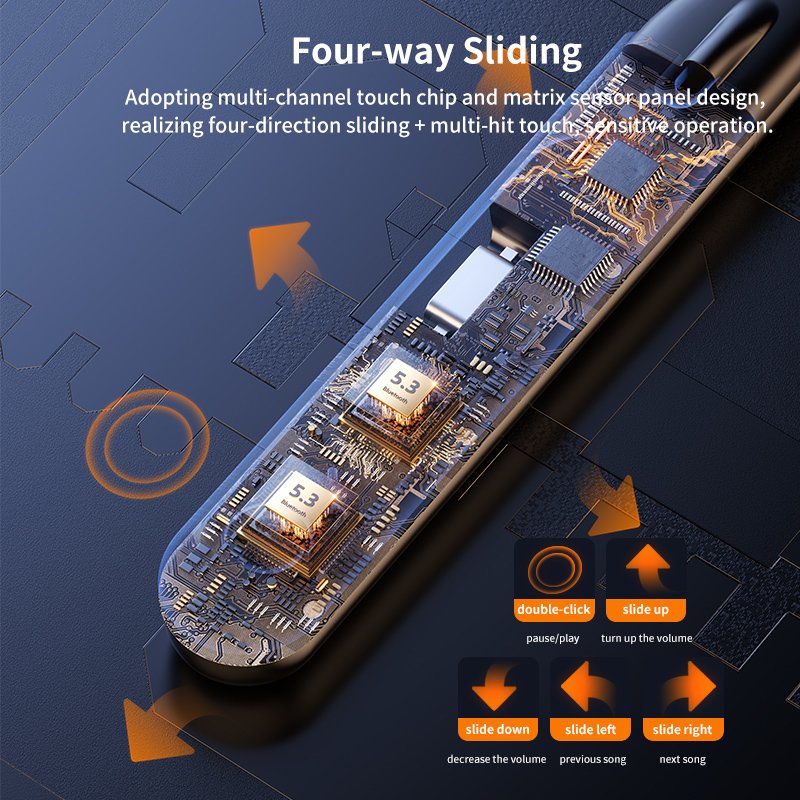- Fyra-vägs glidning: Smidig navigering med multi-channel touch chip och sensorpanel.