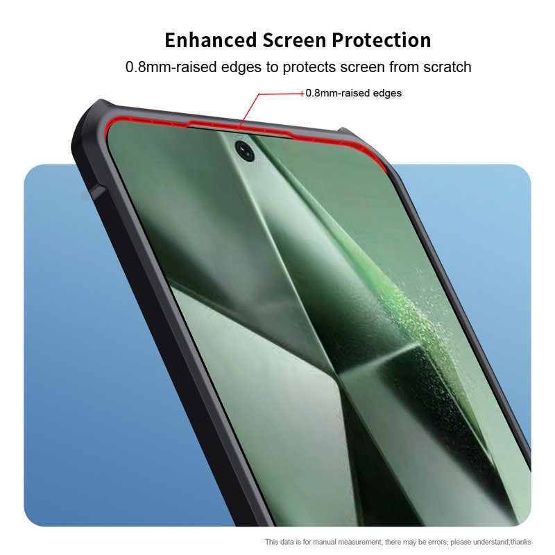 - Perfekt skydd: 0,8 mm upphöjda kanter skyddar kamerans linser och skärmen från stötar.