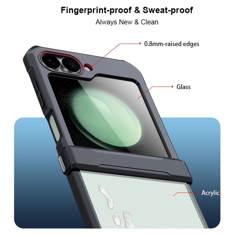 Denna skyddande fodral är tillverkat av högkvalitativa material som TPU, akryl och härdat glas. Det är både hållbart och lätt, vilket gör det enkelt att använda utan att kompromissa med skyddet. Med sin smarta design erbjuder det utmärkt skydd för både skärmen och kameran.