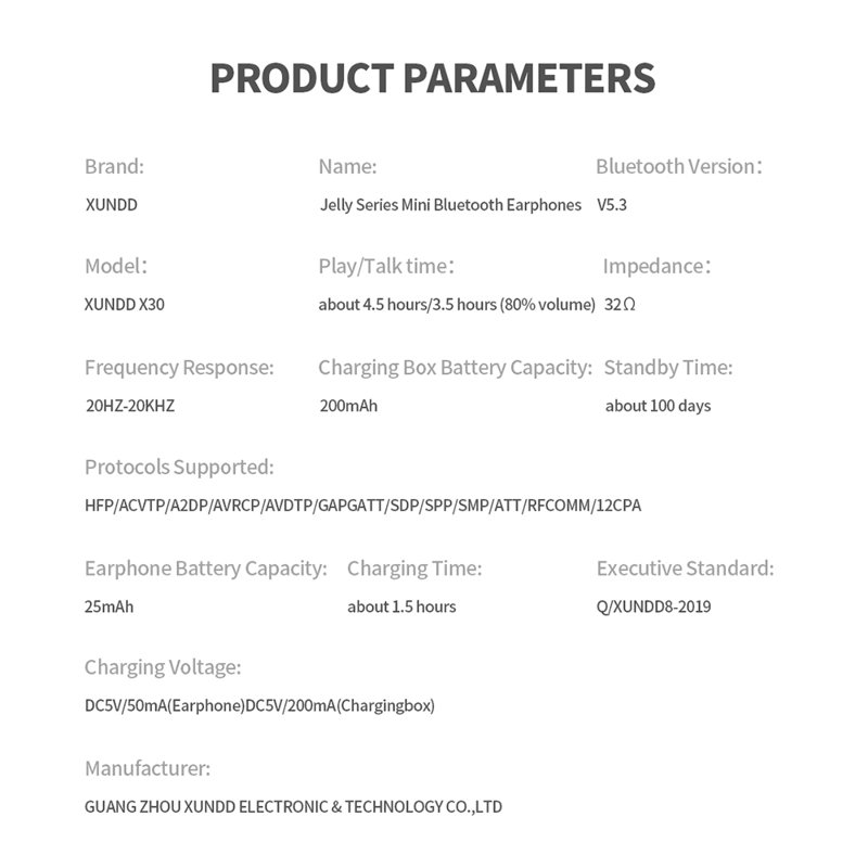 • Portabel laddning: Med det medföljande 200mAh laddningsfodralet kan du ladda hörlurarna när du är på språng.
