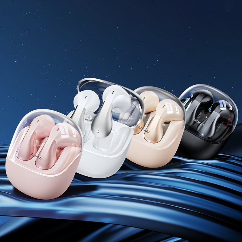 Upplev enastående ljudkvalitet med våra trådlösa hörlurar. Med en Bluetooth 5.3-chip får du en stabil och snabb anslutning. Den eleganta designen med genomskinlig laddningsbox gör dem både stiliga och praktiska. Hörlurarna passar perfekt i örat och är bekväma att bära under längre perioder.