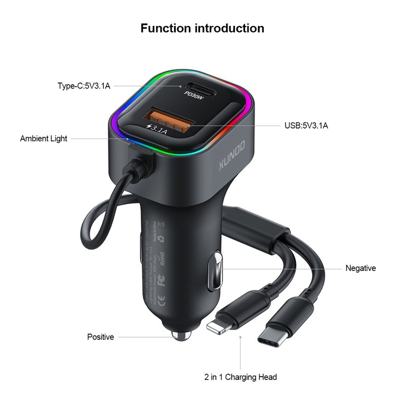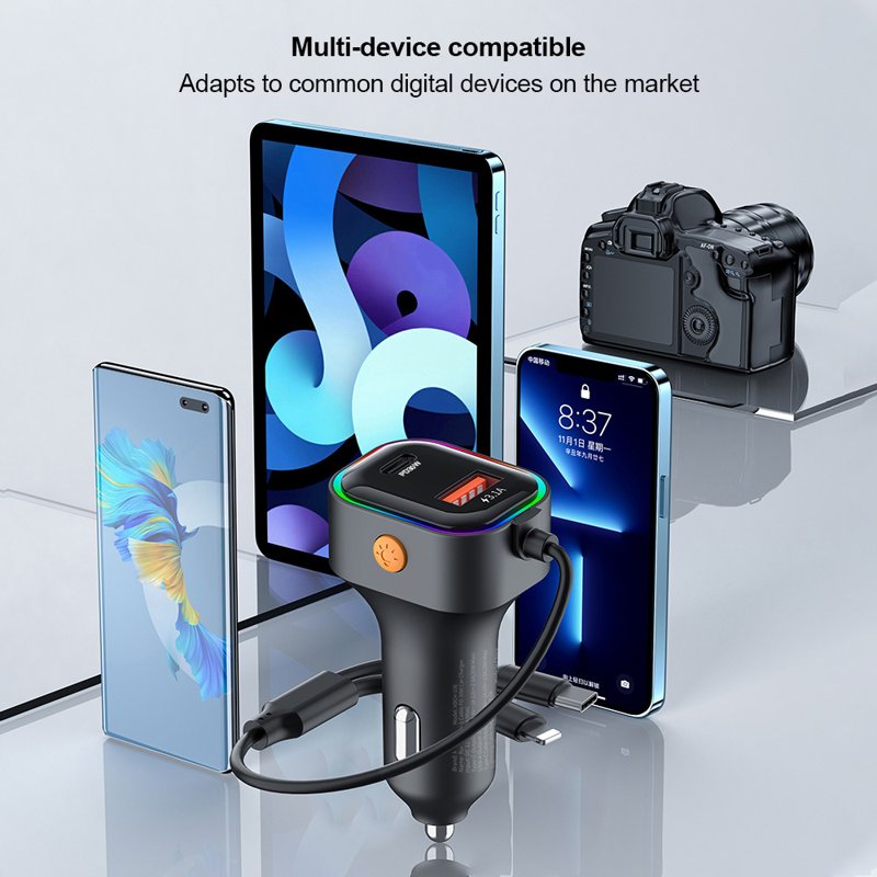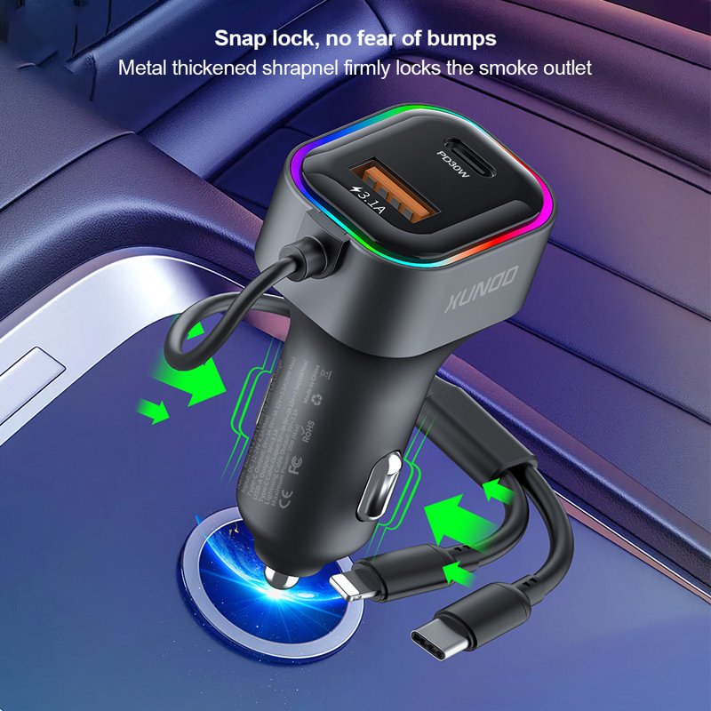 XUNDD XDCH-106 Biladapter 22,5W Dubbelkabel Snabbladdning Flera portar