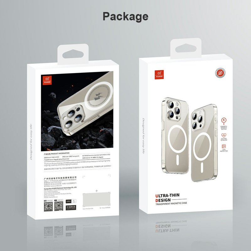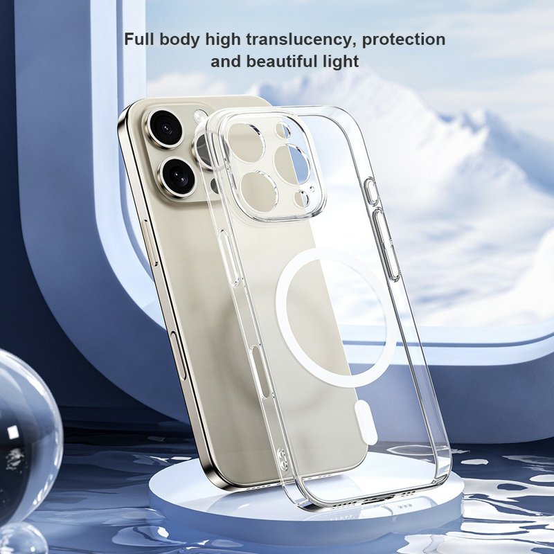 Upptäck det perfekta skyddet för din telefon med detta slimmade och transparenta fodral. Tillverkat av ultratunt PC-material, framhäver det telefonens ursprungliga skönhet. Med förbättrad magnetisk laddning och överlägsen skyddsfunktionalitet är detta fodral både stiligt och funktionellt.