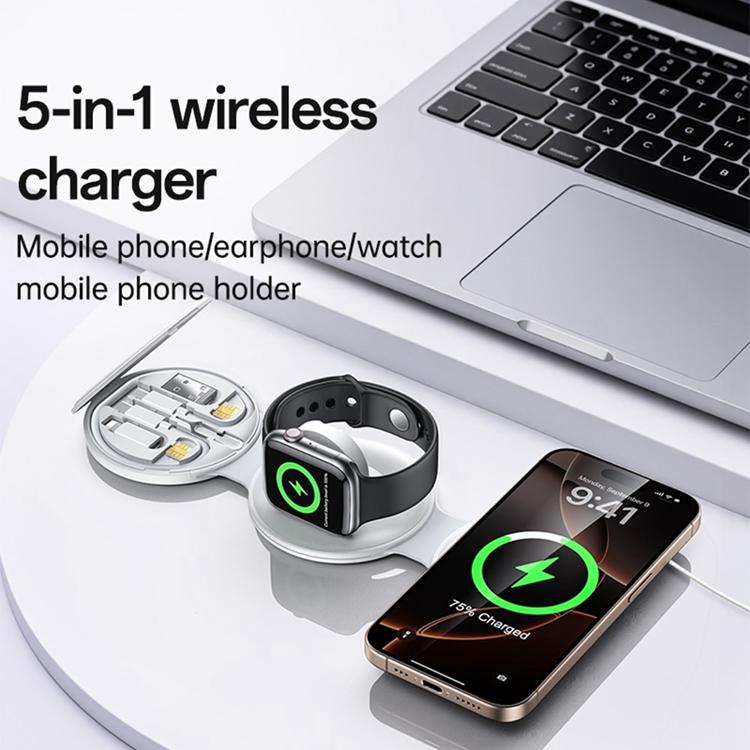YESIDO 5in1 Trådlös Laddare iPhone, Apple Watch, Airpods med Bärbar Förvaringslåda DS29 - Vit
