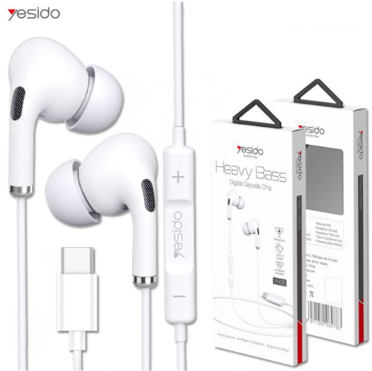 YESIDO Skal Hörlurar In-Ear Typ-C - Vit