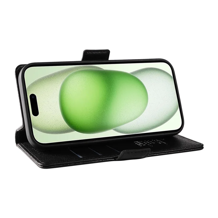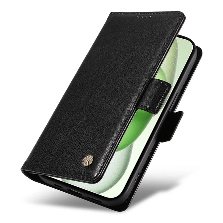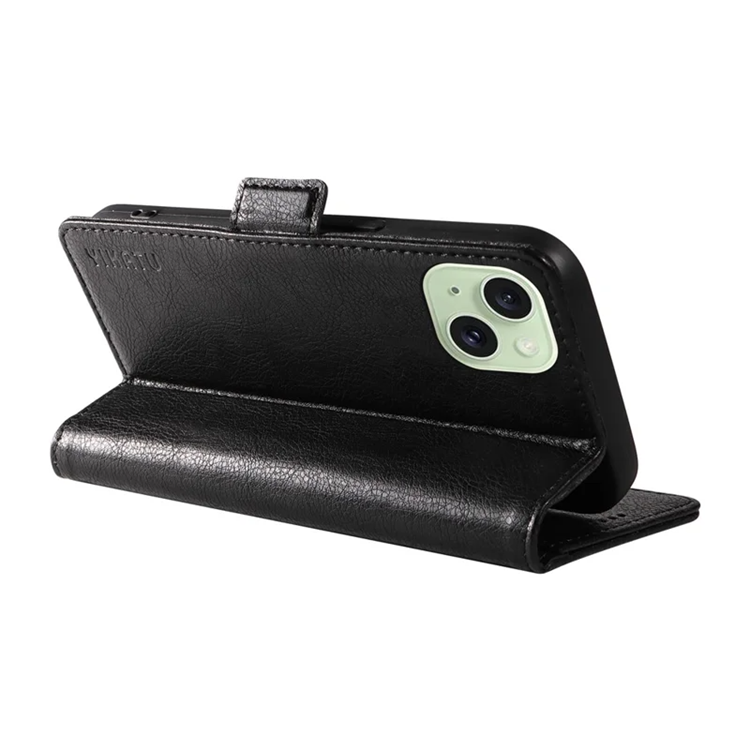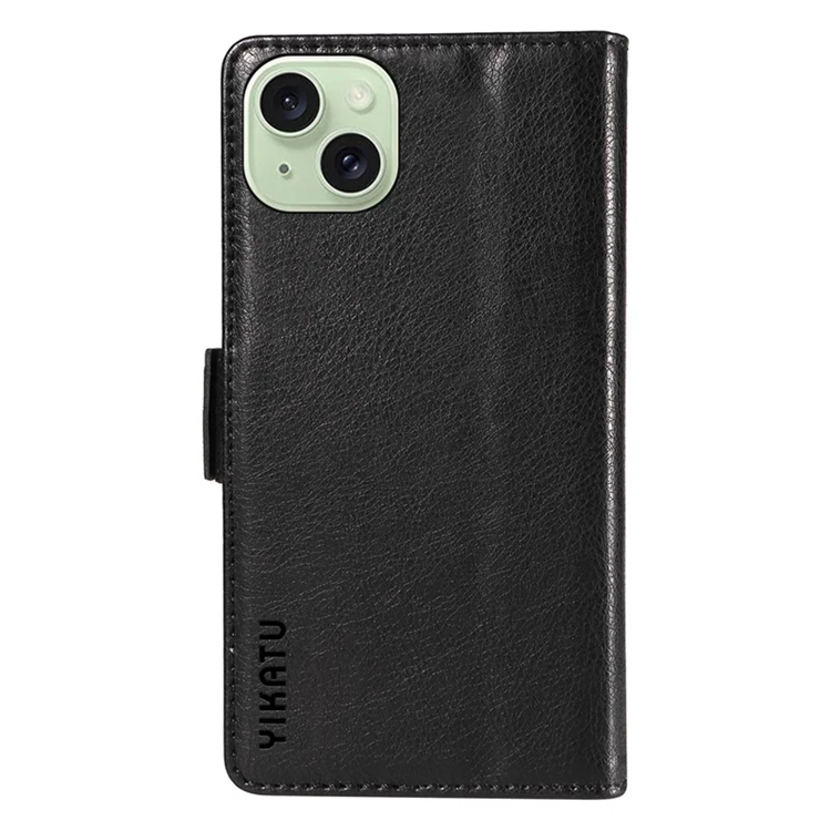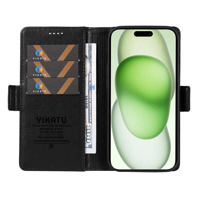 YIKATU iPhone 15 Plus Plånboksfodral YK-007 Litchi Texture PU-läder - Svart