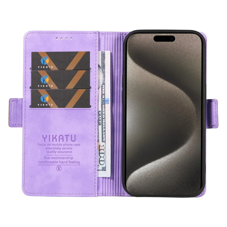 YIKATU iPhone 15 Pro Max Plånboksfodral YK-007 Litchi Texture PU-läder - Lila