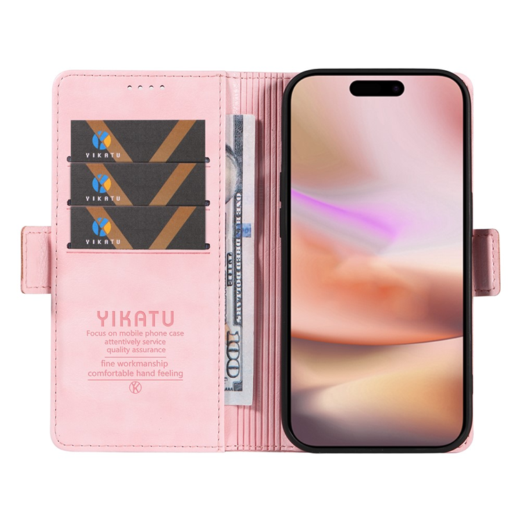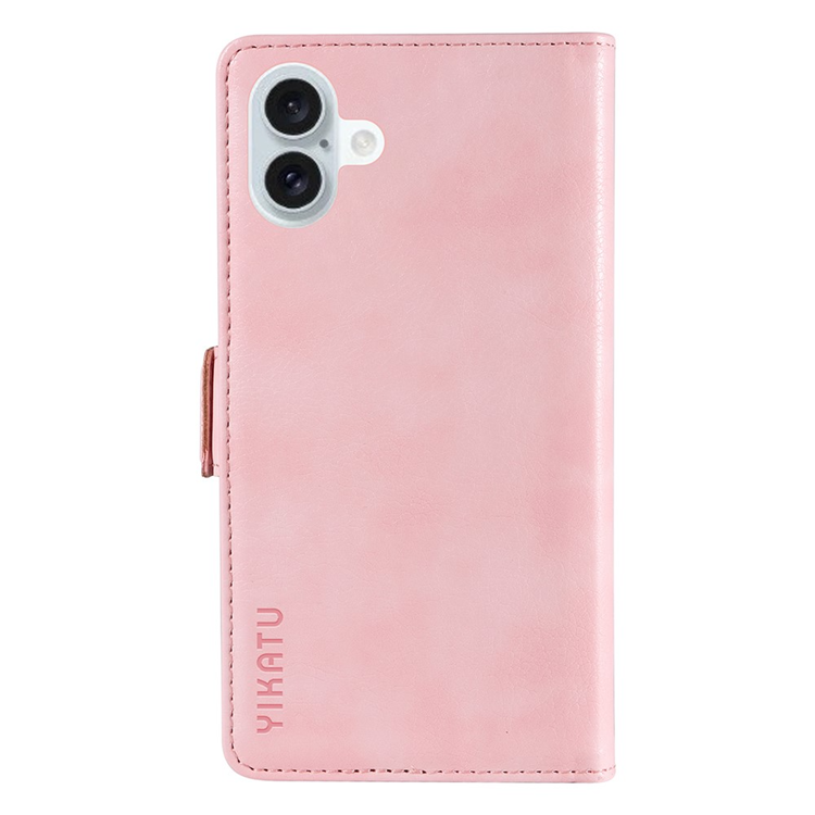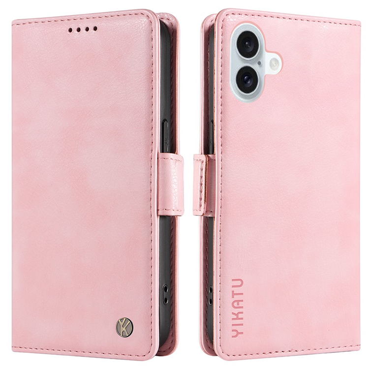 YIKATU iPhone 16 Plus Plånboksfodral YK-007 Litchi Texture PU-läder - Rosa