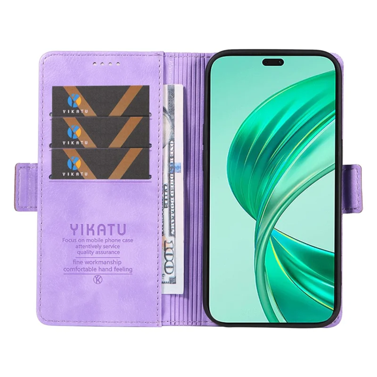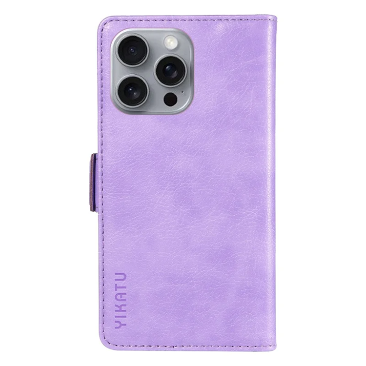 YIKATU iPhone 16 Pro Max Plånboksfodral YK-007 Litchi Texture PU-läder - Lila