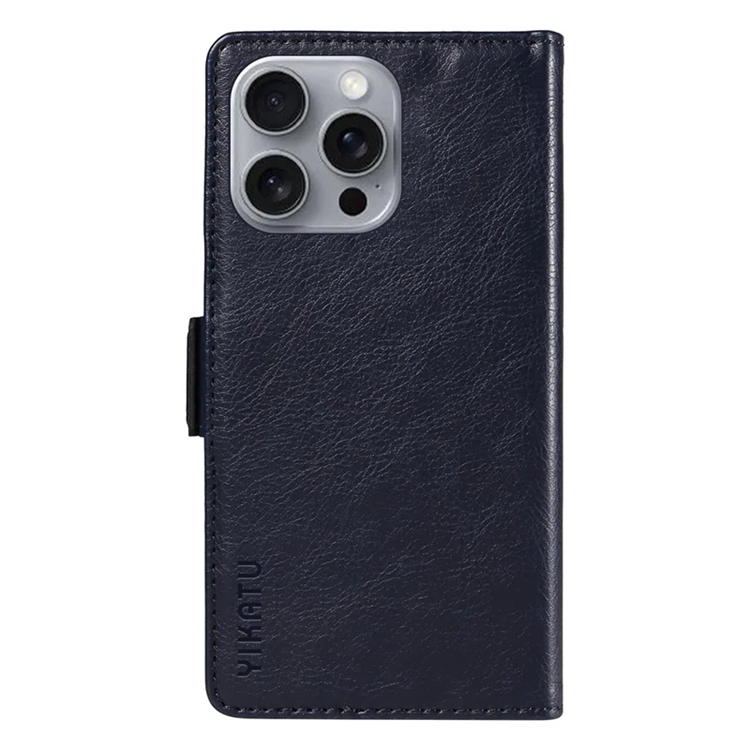 YIKATU iPhone 16 Pro Max Plånboksfodral YK-007 Litchi Texture PU-läder - Marinblå