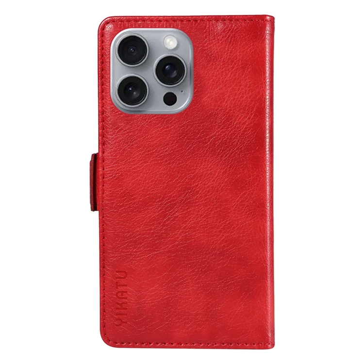 YIKATU iPhone 16 Pro Max Plånboksfodral YK-007 Litchi Texture PU-läder - Röd