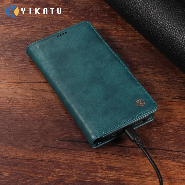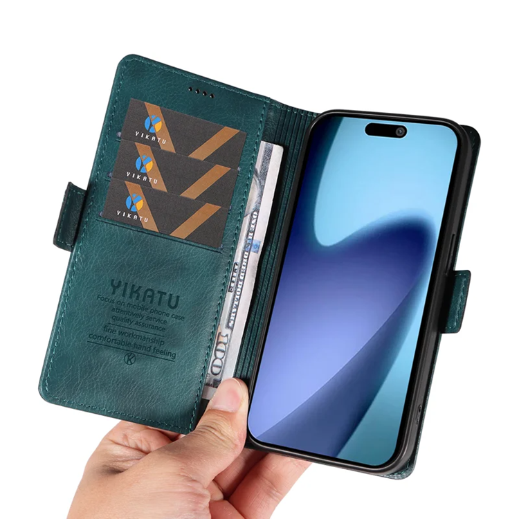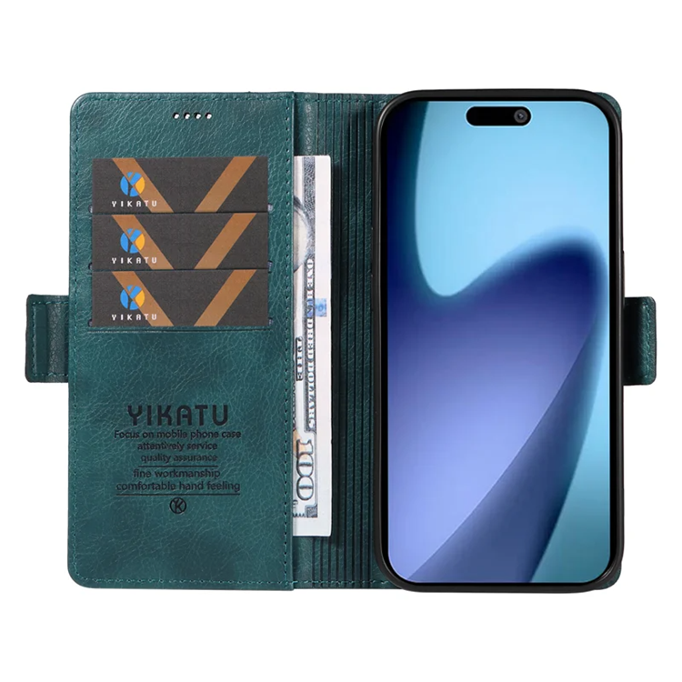 YIKATU iPhone 17 Air Plånboksfodral YK-007 Litchi Texture PU-läder - Blå