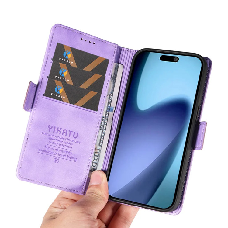 YIKATU iPhone 17 Air Plånboksfodral YK-007 Litchi Texture PU-läder - Lila