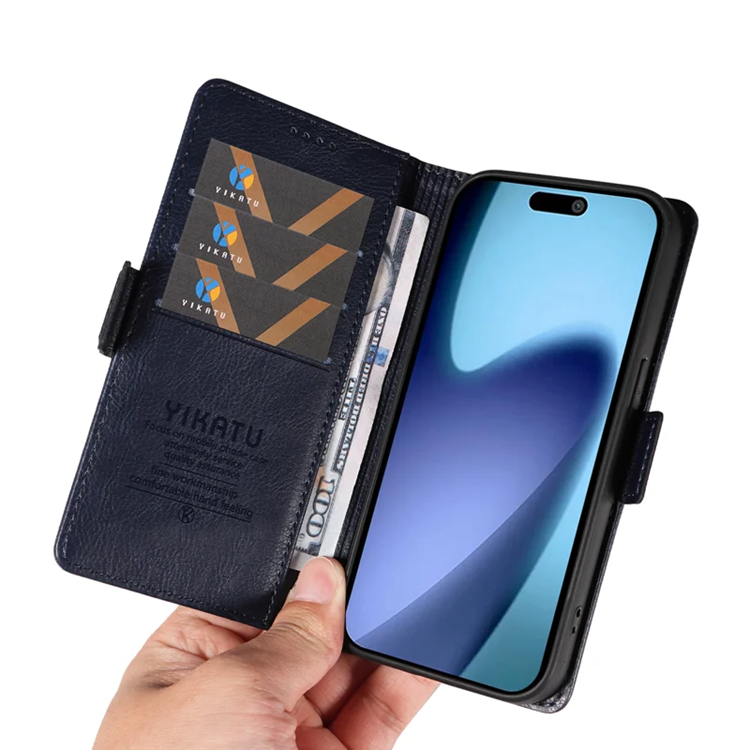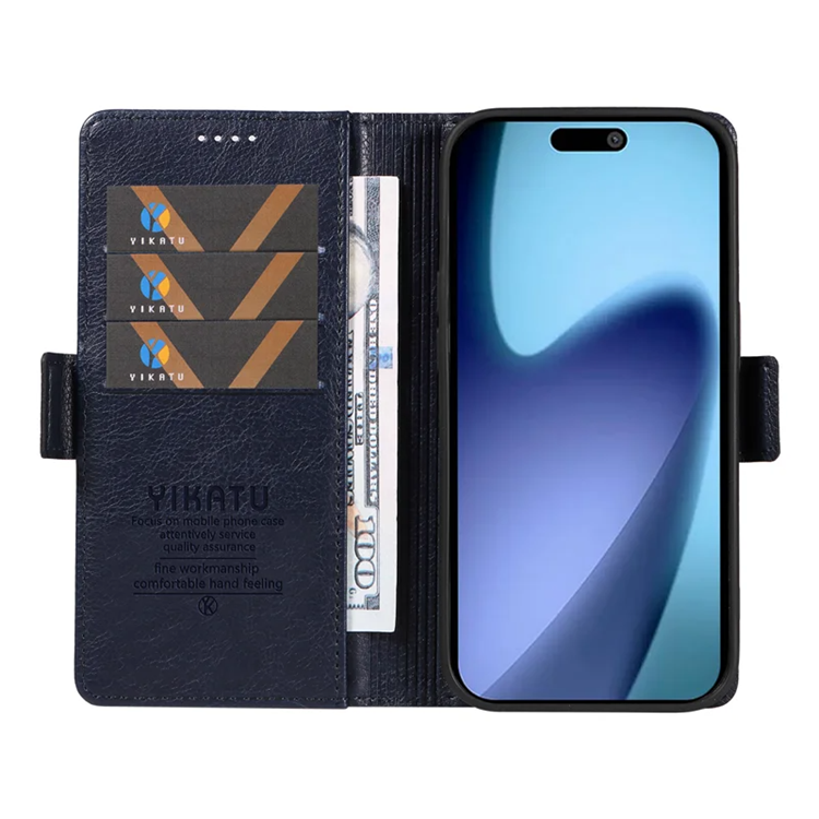 YIKATU iPhone 17 Air Plånboksfodral Litchi Texture - Marinblå