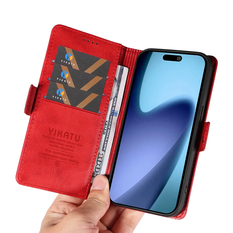 YIKATU iPhone 17 Air Plånboksfodral YK-007 Litchi Texture PU-läder - Röd