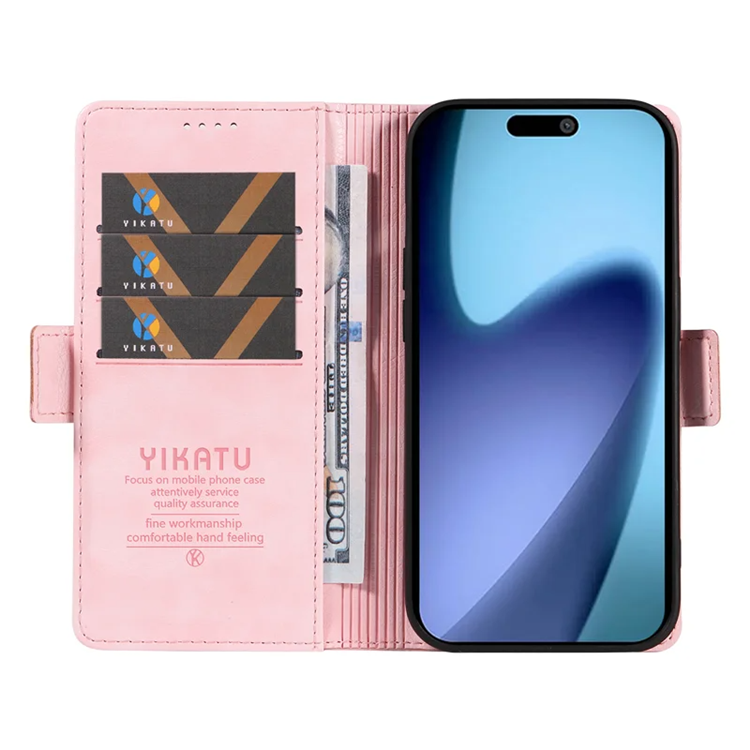 YIKATU iPhone 17 Air Plånboksfodral YK-007 Litchi Texture PU-läder - Rosa