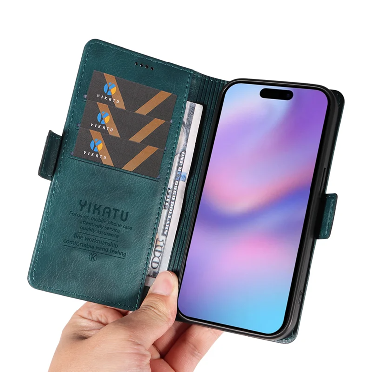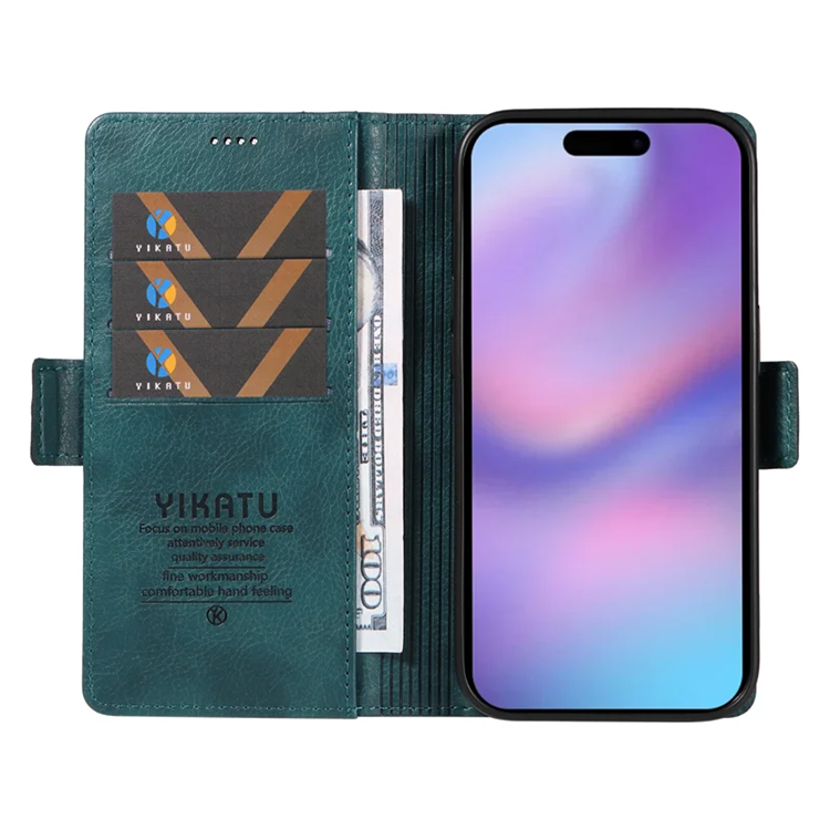 YIKATU iPhone 17 Plånboksfodral YK-007 Litchi Texture PU-läder - Blå