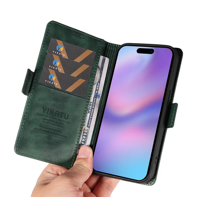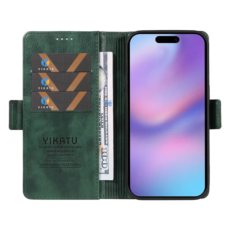 YIKATU iPhone 17 Plånboksfodral YK-007 Litchi Texture PU-läder - Grön