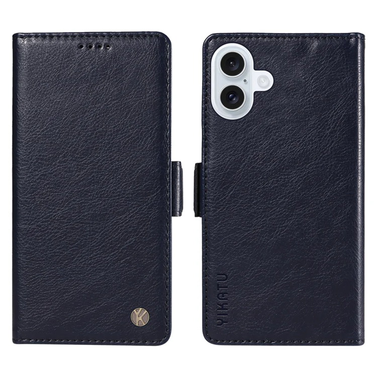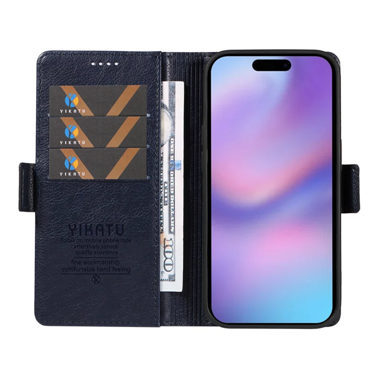 YIKATU iPhone 17 Plånboksfodral YK-007 Litchi Texture PU-läder - Marinblå