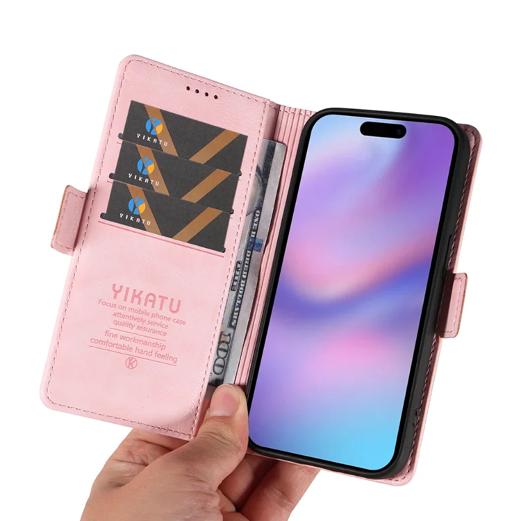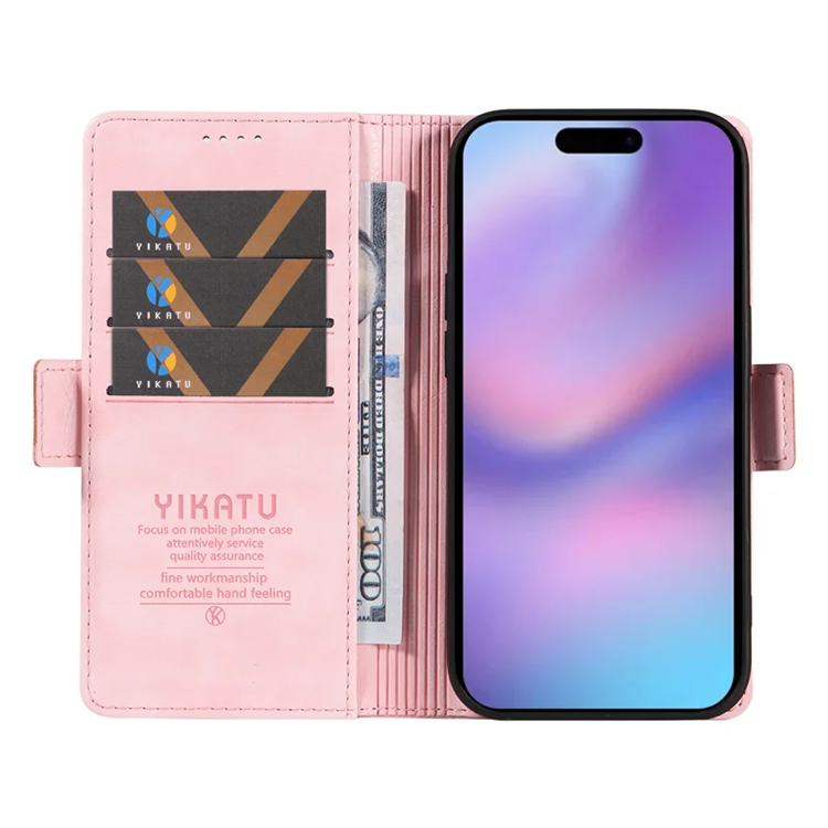 YIKATU iPhone 17 Plånboksfodral YK-007 Litchi Texture PU-läder - Rosa