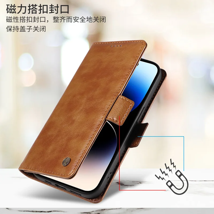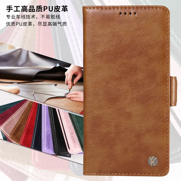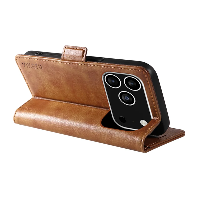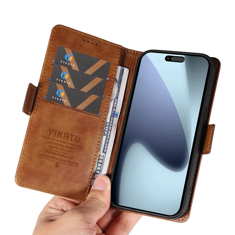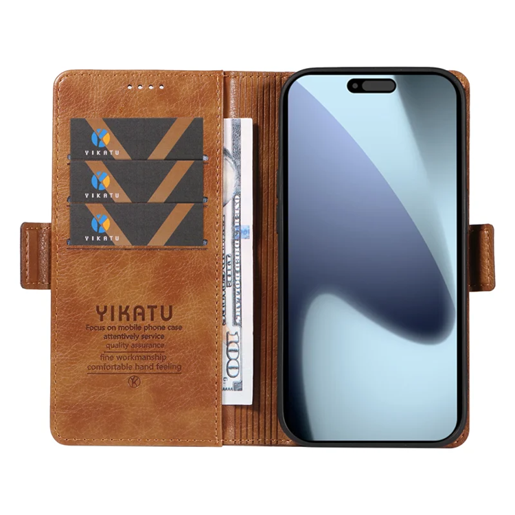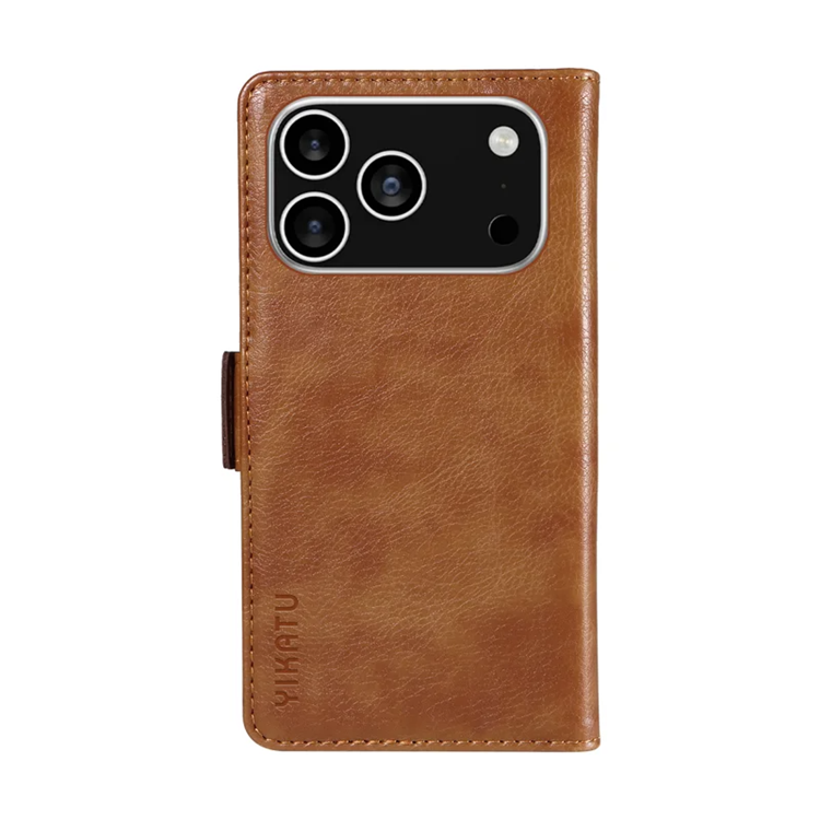 YIKATU iPhone 17 Pro Plånboksfodral YK-007 Litchi Texture PU-läder - Brun