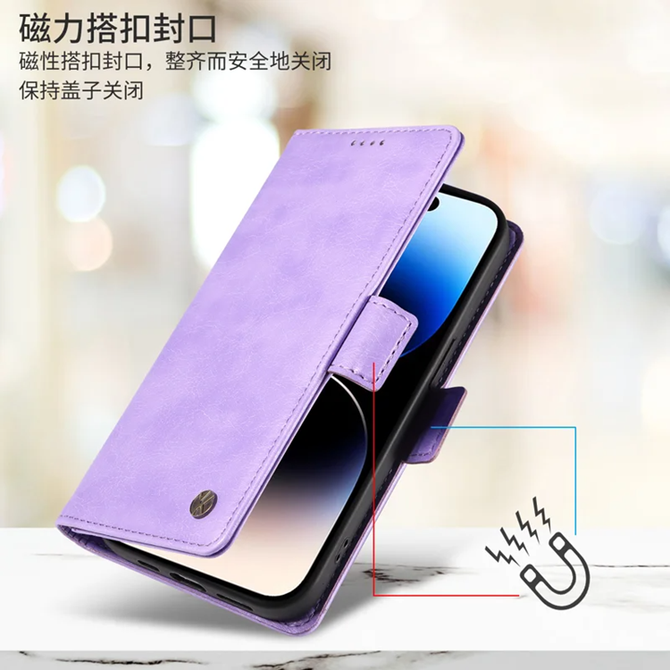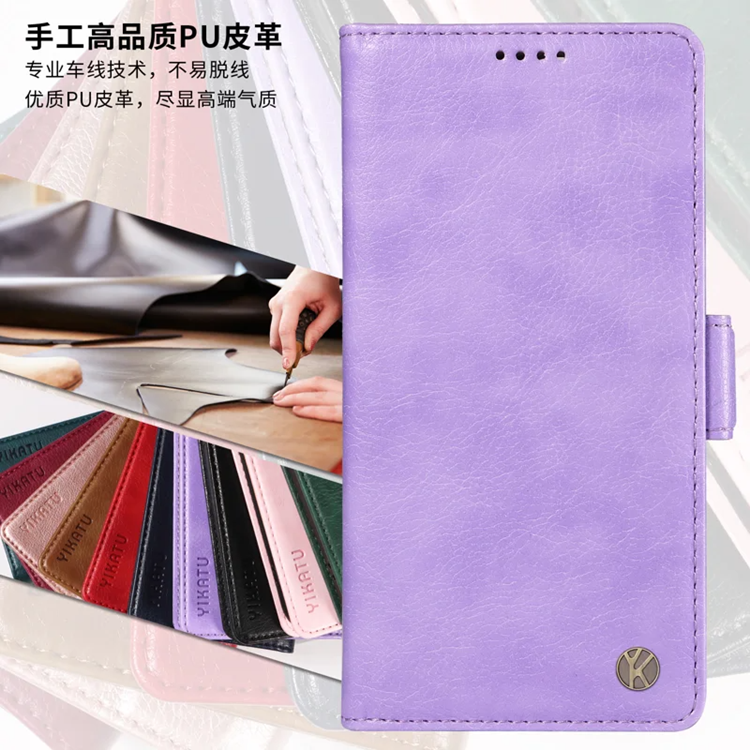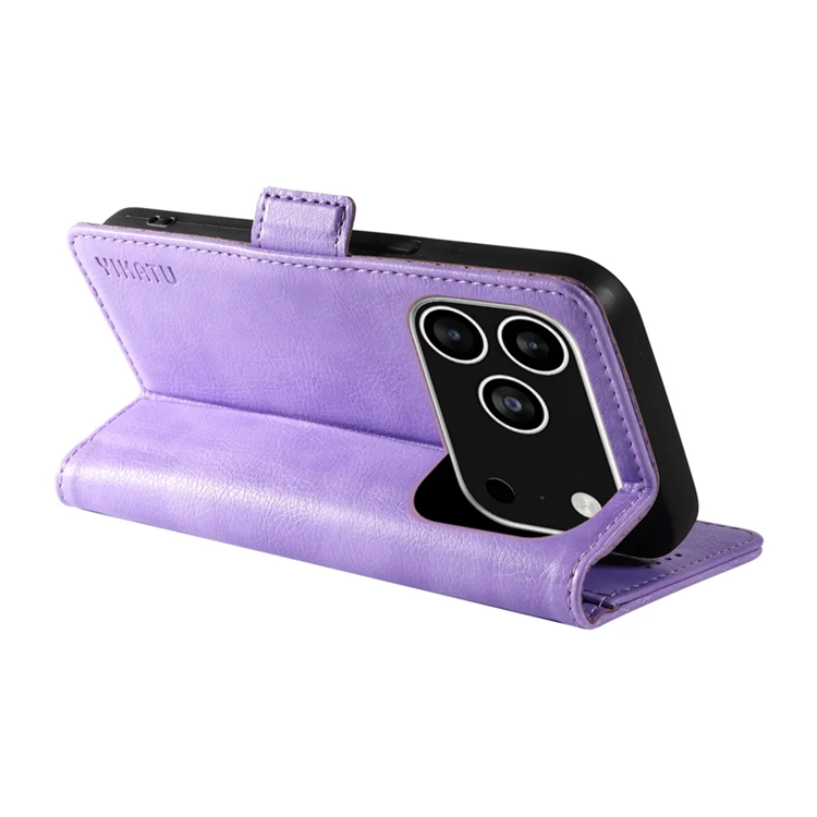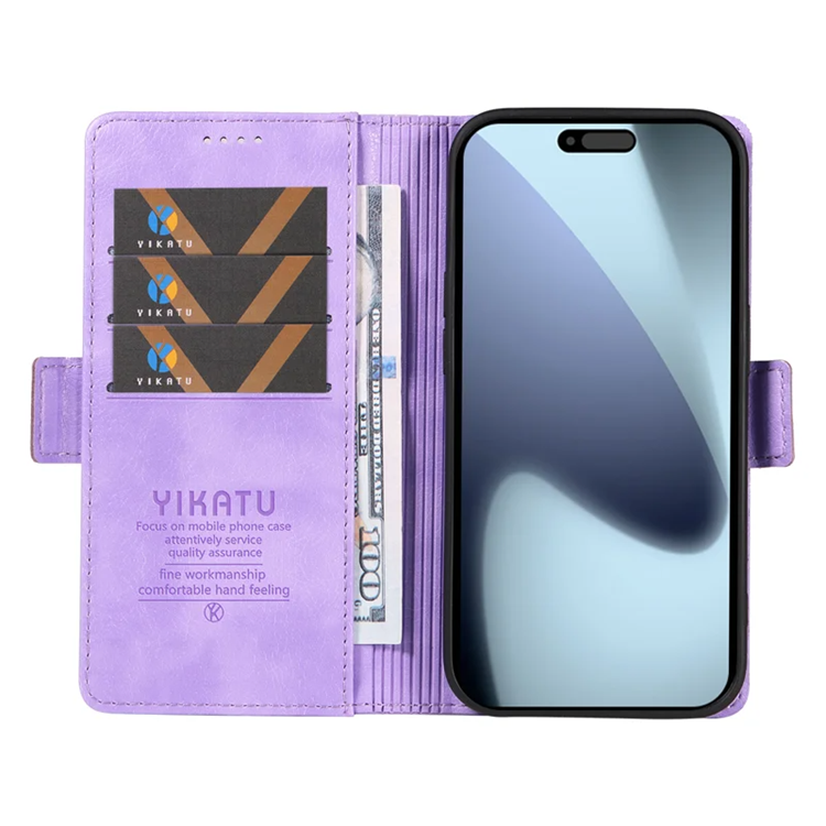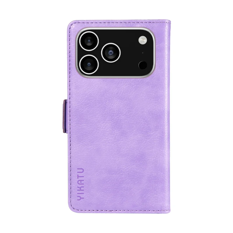 YIKATU iPhone 17 Pro Plånboksfodral YK-007 Litchi Texture PU-läder - Lila