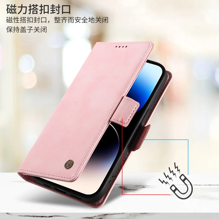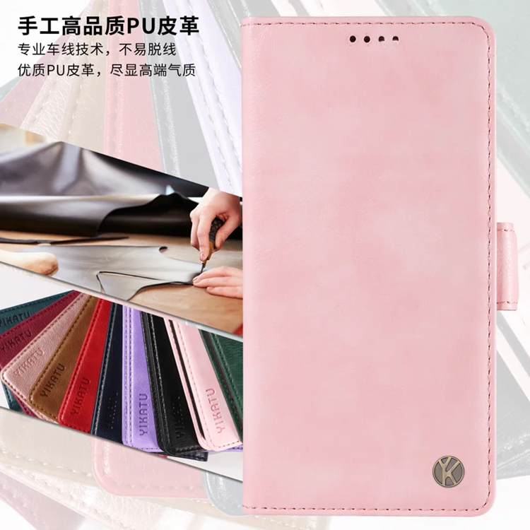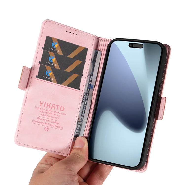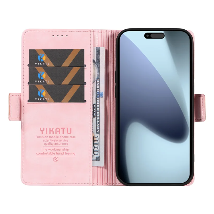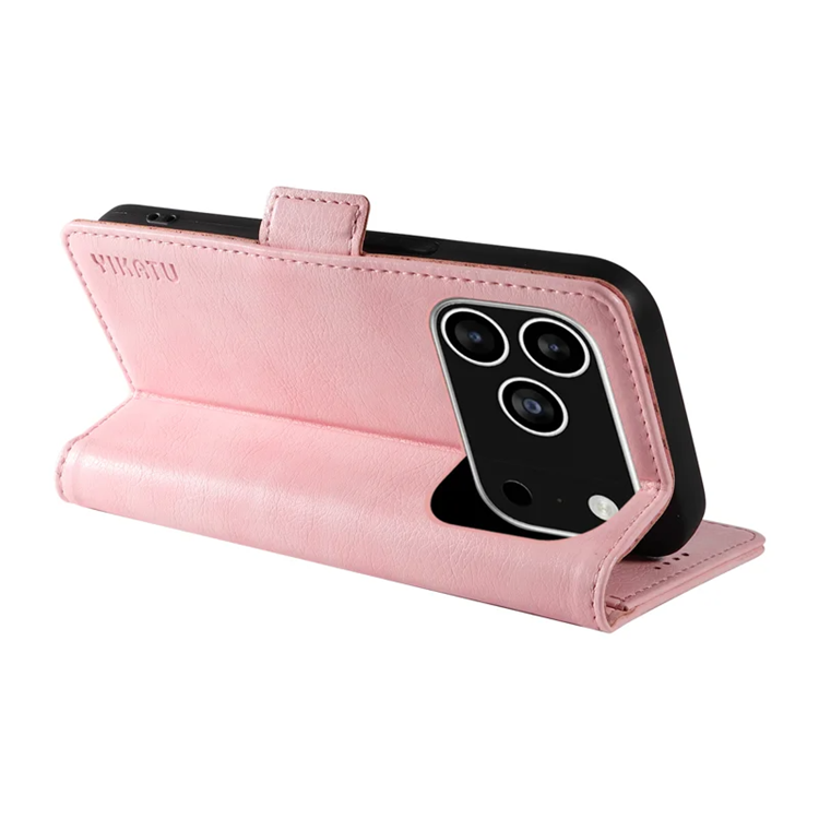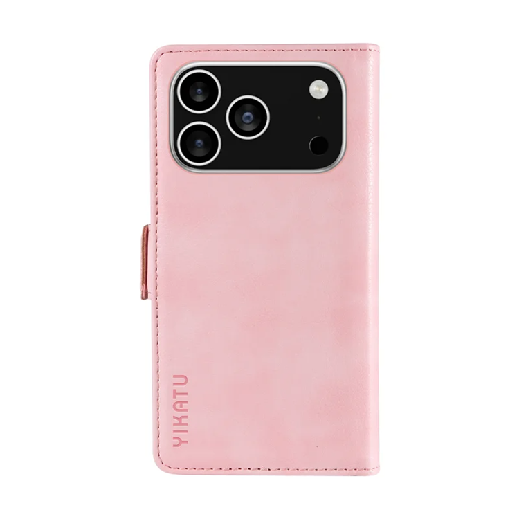 YIKATU iPhone 17 Pro Plånboksfodral YK-007 Litchi Texture PU-läder - Rosa