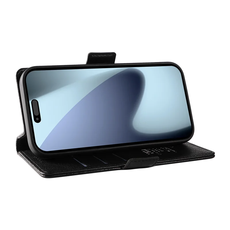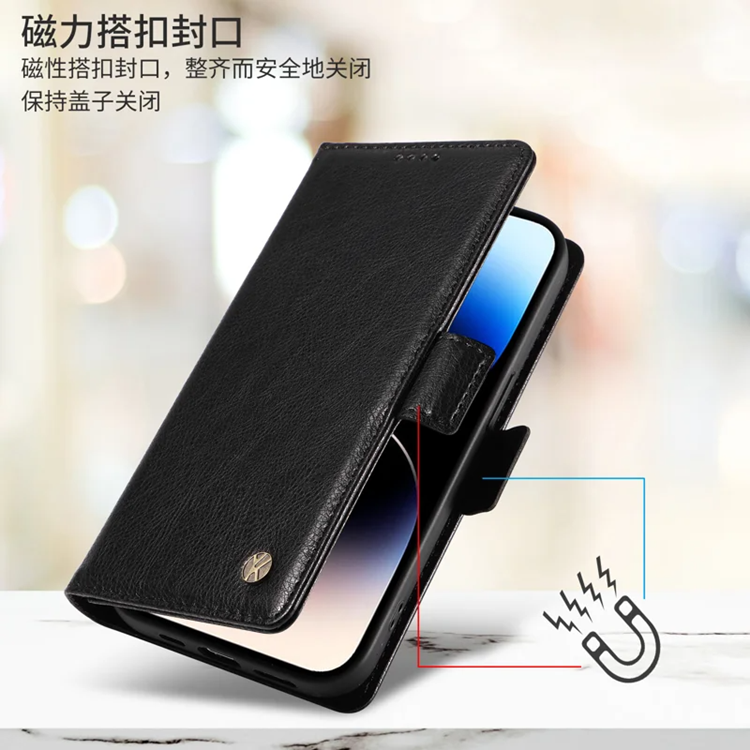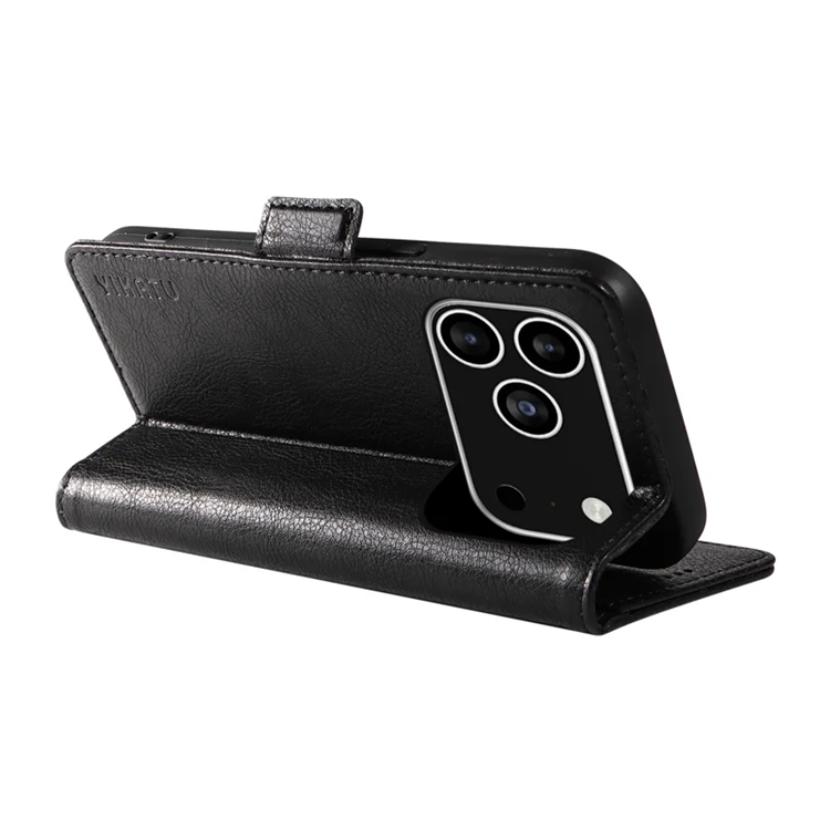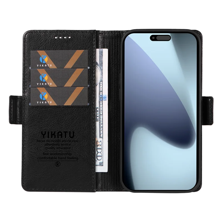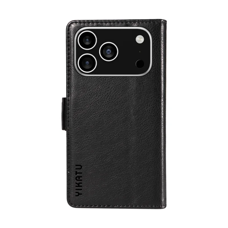 YIKATU iPhone 17 Pro Plånboksfodral YK-007 Litchi Texture PU-läder - Svart