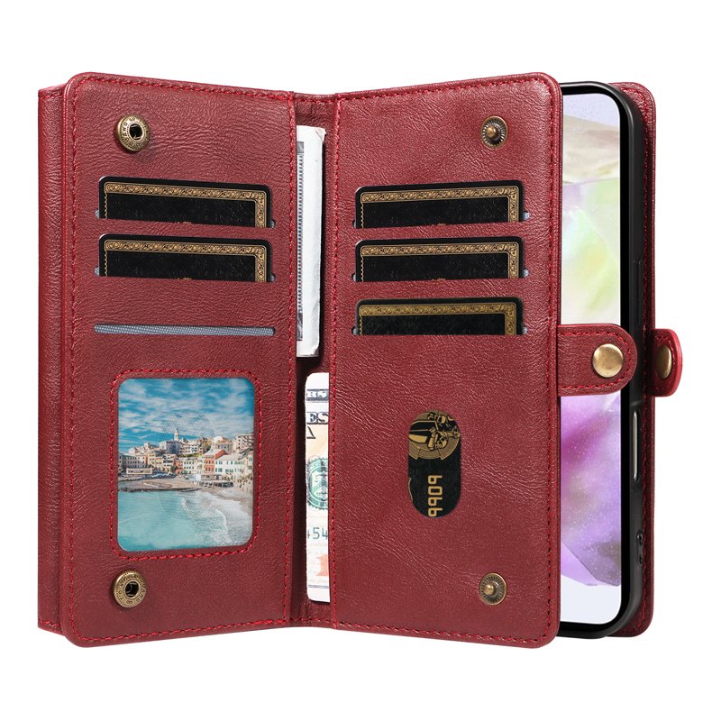 - Ample Storage Capacity: Innehåller 9 kortfack, en zippered ficka, 4 sedelfack och 5 fickor i accordeonstil för maximal organisation.