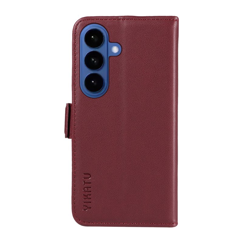 Handla denna produkt YIKATU Samsung Galaxy S26 / S26 Pro Fodral Äkta Läder Ställ - Vinröd