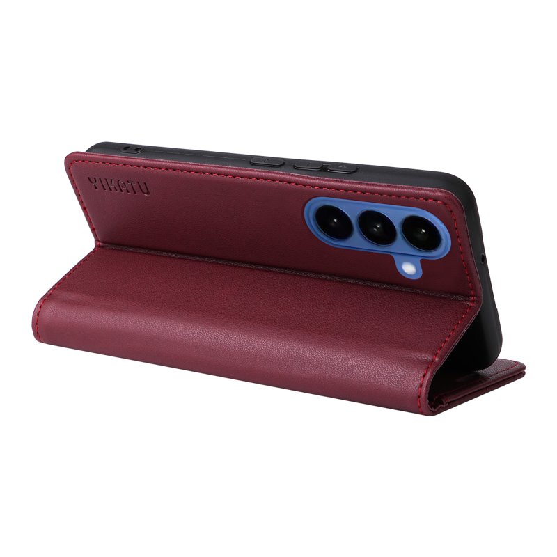 YIKATU Magnetisk Stängning PU Läder Mobilfodral för Samsung Galaxy S26+ är den perfekta lösningen för att skydda din telefon. Med en elegant vinröd design kombinerar detta fodral stil och funktionalitet. Det erbjuder robust skydd och praktiska funktioner som gör det enkelt att hålla dina värdesaker organiserade.