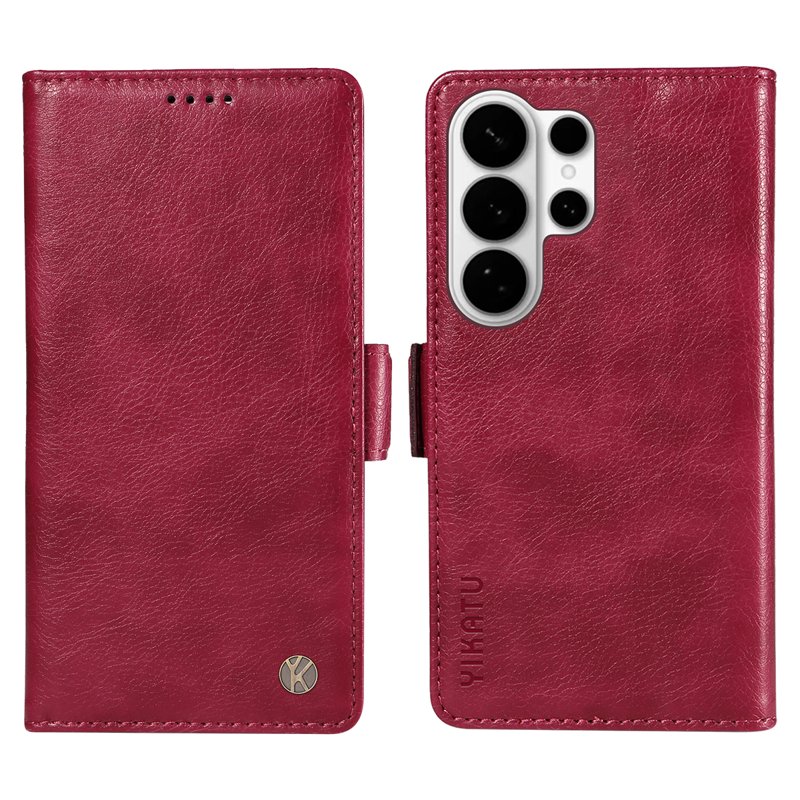 YIKATU Samsung Galaxy S26 Ultra Fodral Konstläder Litchi - Vinröd